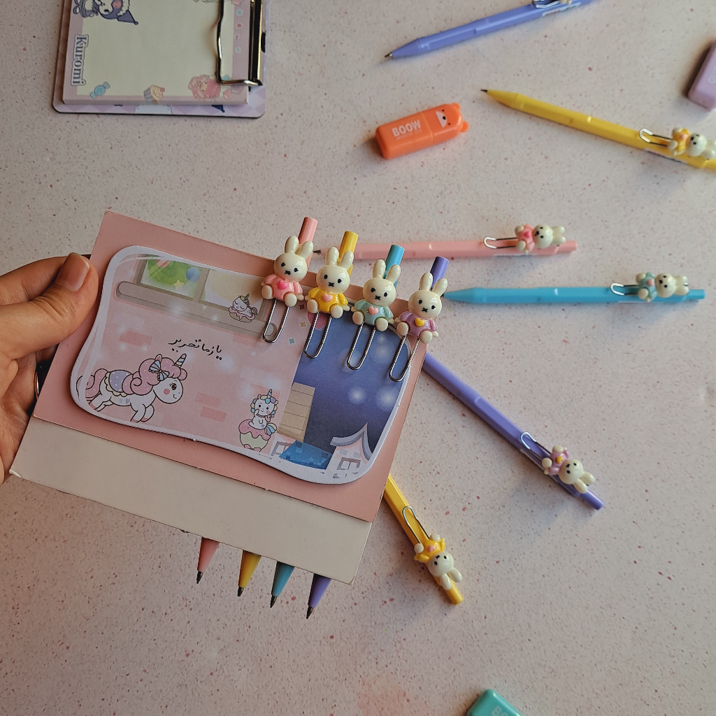 گیره دار هستن و خیلی راحت میتونی به کتاب یا دفترت وصلش کنی🥰