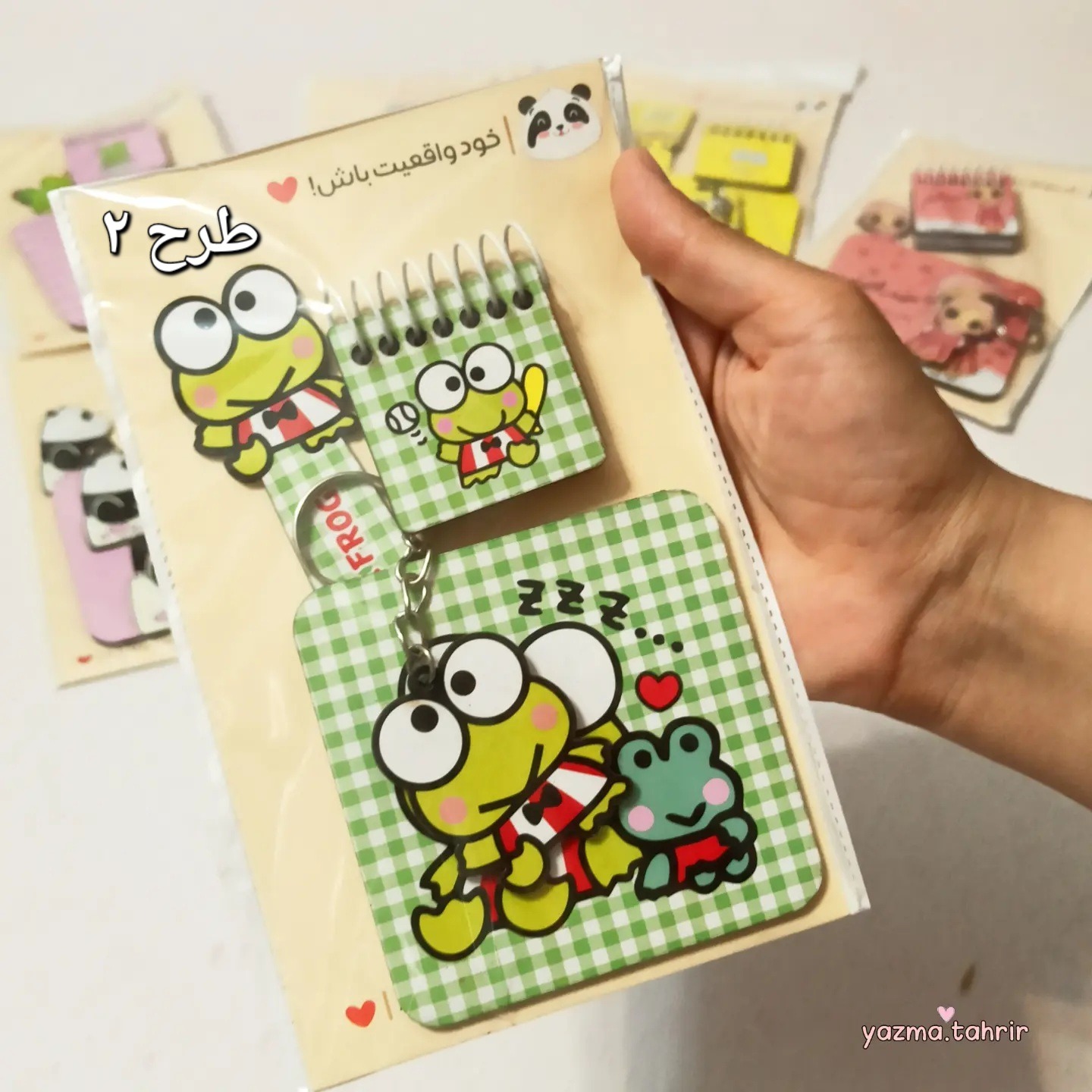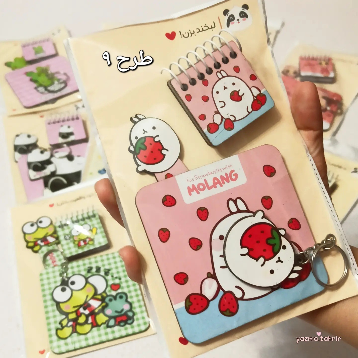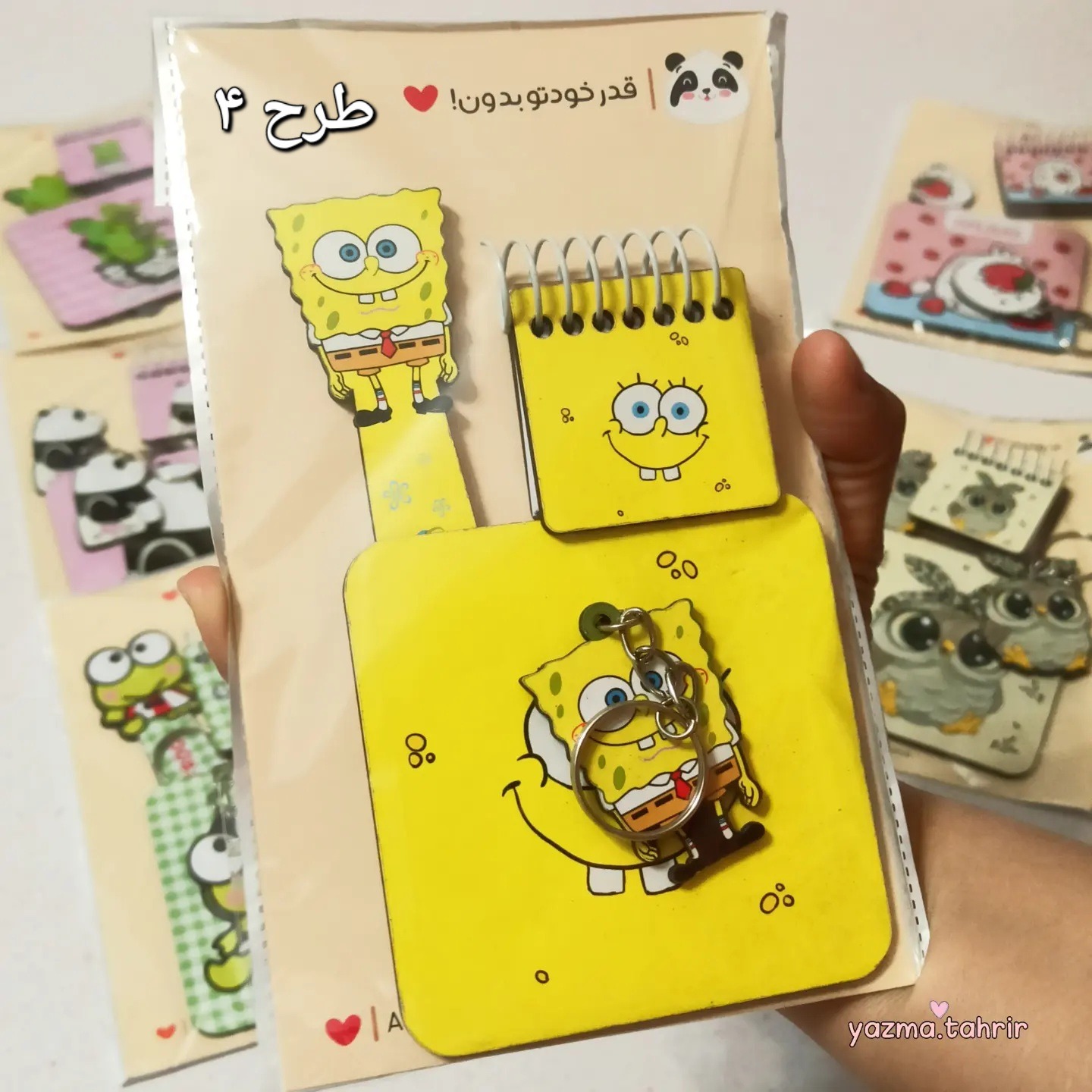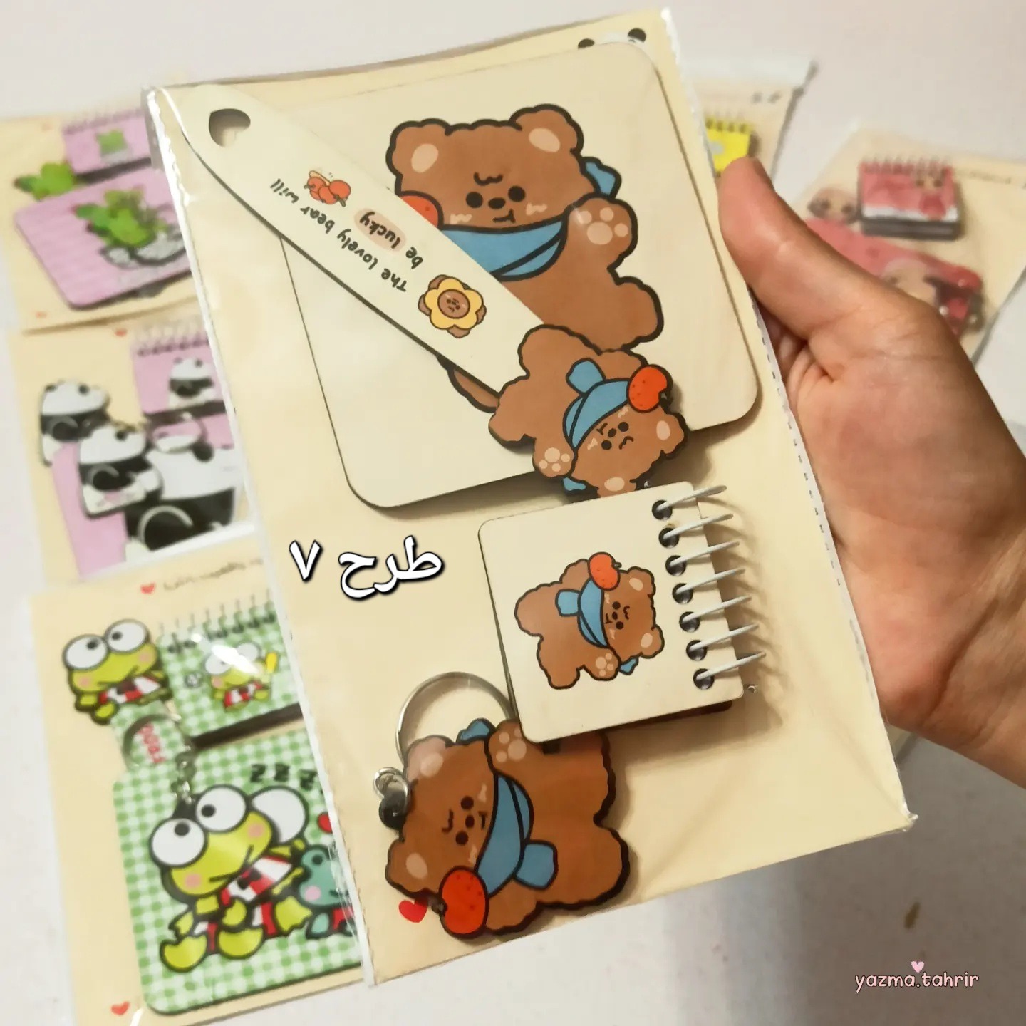💥ست چهار تیکه چوبی شامل 🎈جا کلیدی 🎈بوک مارک 🎈دفترچه کوچولو 5×5 🎈زیر لیوانی در طرح های کیوت و بانمک 🥹